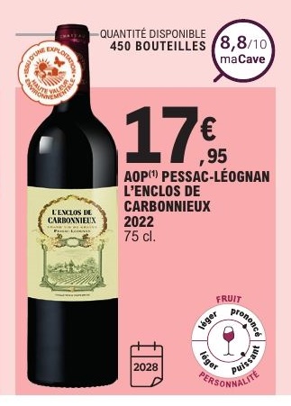 PESSAC LEOGNAN ROUGE L'ENCLOS DE CARBONNIEUX AOP HVE