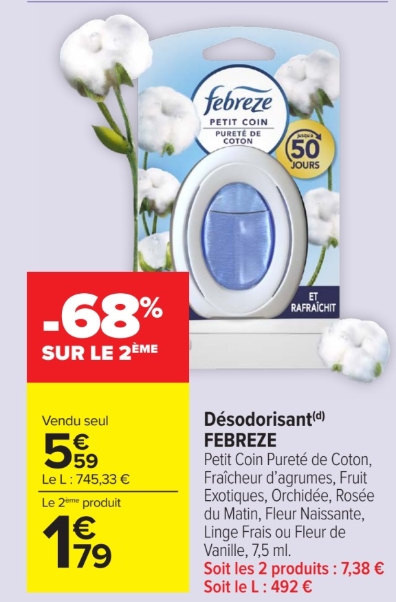 DESODORISANT PETIT COIN SALLE DE BAIN LINGE FRAIS 50 JOURS