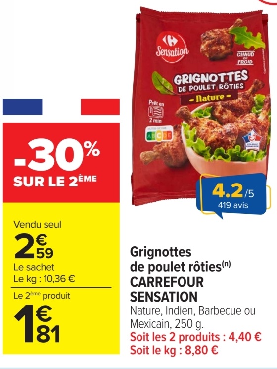 GRIGNOTTE POULET NATURE (LABEL=VOLAILLE FRANCAISE)(O=FRANCE)(VENTE=UVCI/LS)