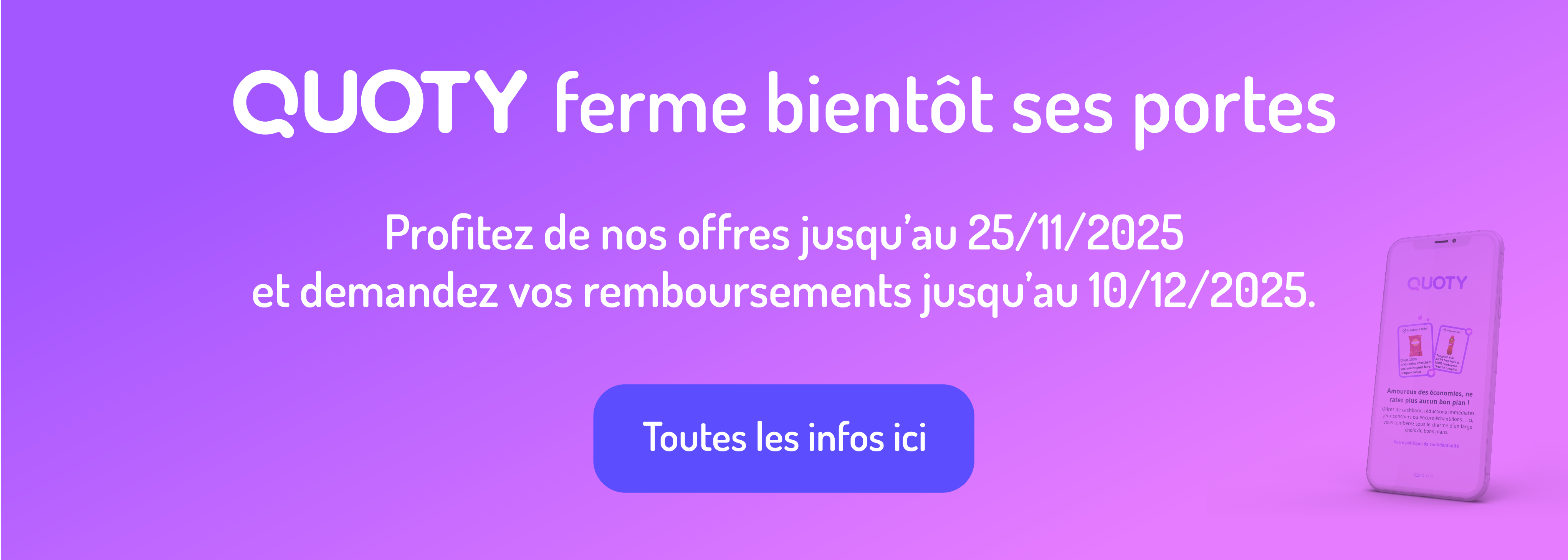 Renseigner une adresseTéléchargez Quoty pour retrouver encore plus d’offres